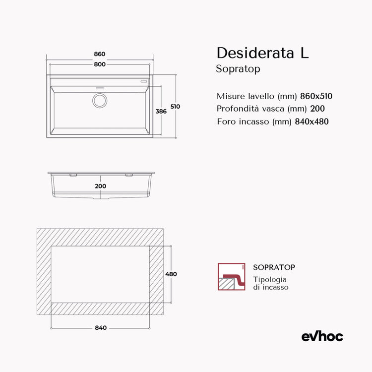 Evhoc gives you the opportunity to choose the solution that best suits your kitchen: you decide whether to purchase the sink and the accessory, the sink and the mixer, or opt for the solution that allows you to have the entire set.