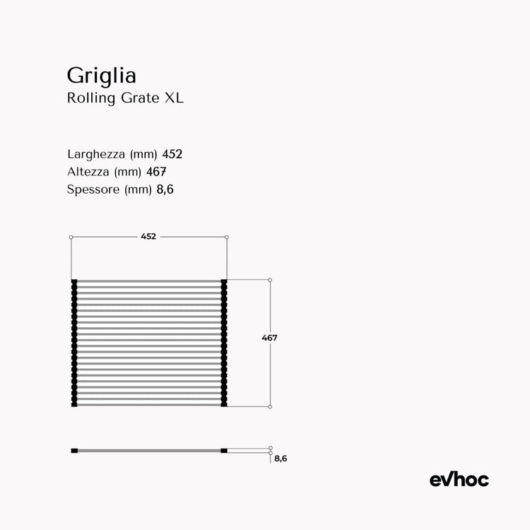 The Rolling Grate XL grid, designed to fit the Deus XXL sink, adds an additional level of practicality and can be used as you prefer: as a dish drainer or glass drainer, to store pots and more, making every kitchen activity simpler and more efficient.