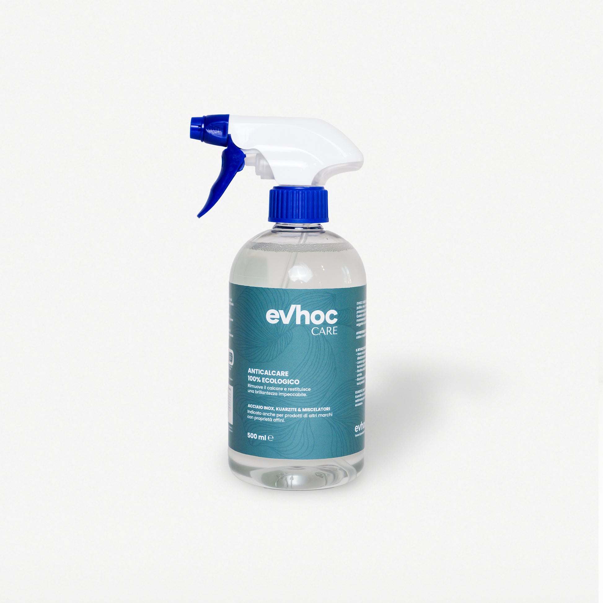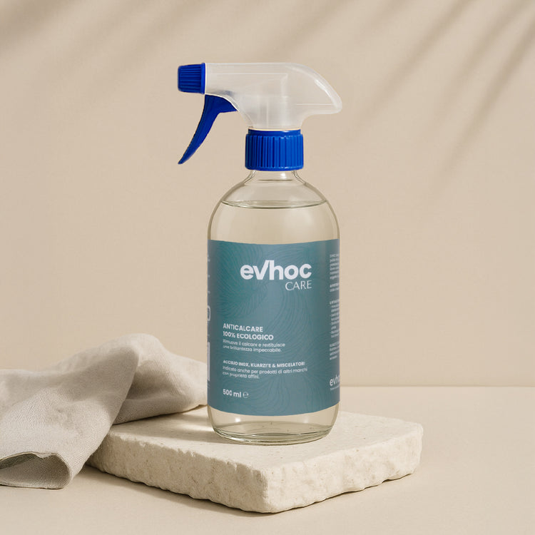 With EVHOC CARE Limescale Remover, your sink and faucet will shine again in their elegant perfection. This eco-friendly formula effectively removes limescale while protecting surfaces, creating a protective barrier that preserves their brightness over time – with full respect for the environment.