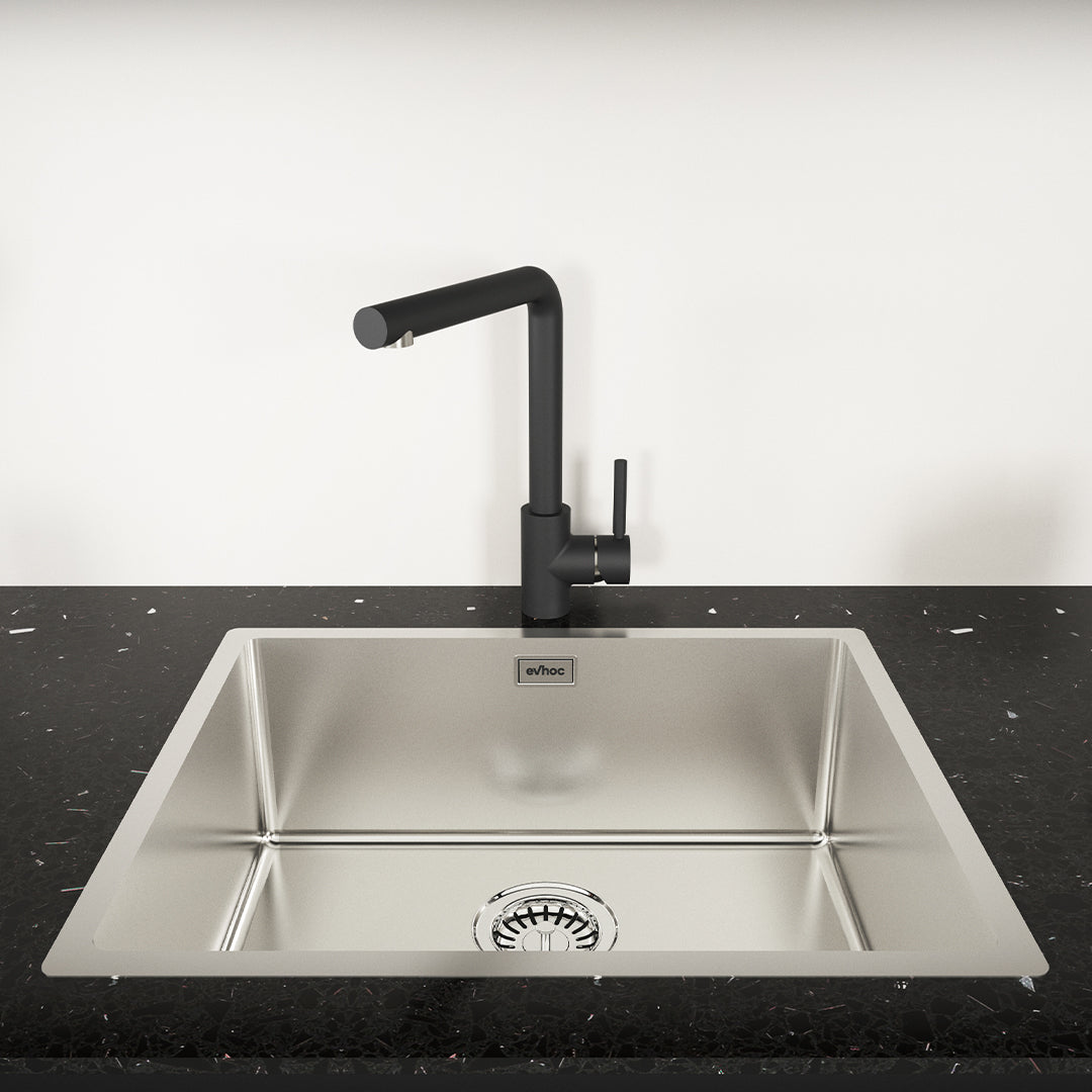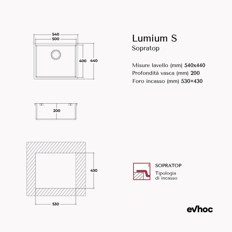 In its Small inset version, this sink gracefully positions itself on the kitchen counter, occupying only 54×44 cm, perfectly adapting to even compact kitchens.