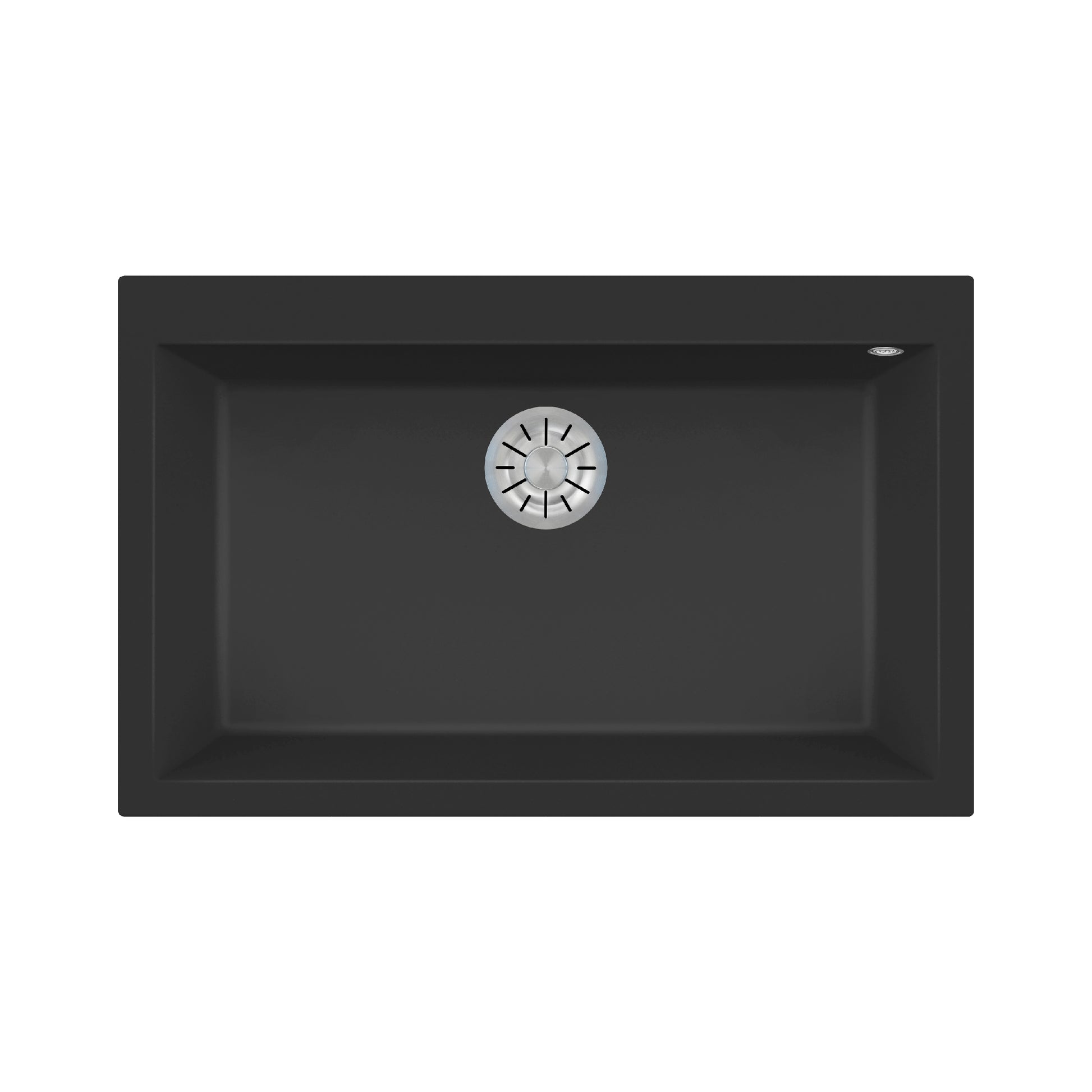 The Unicum L Inset Black sink adds a touch of sophistication and modernity to the kitchen, while the Complement 280 Petra cutting board optimizes workspace in the best way possible.