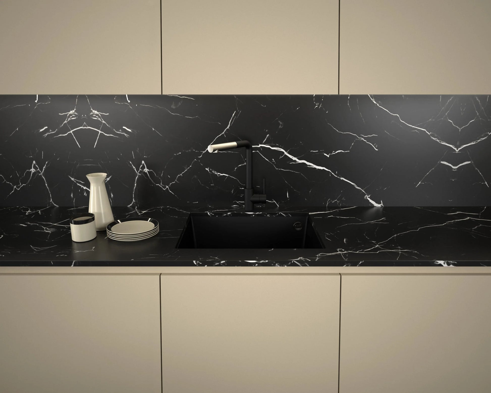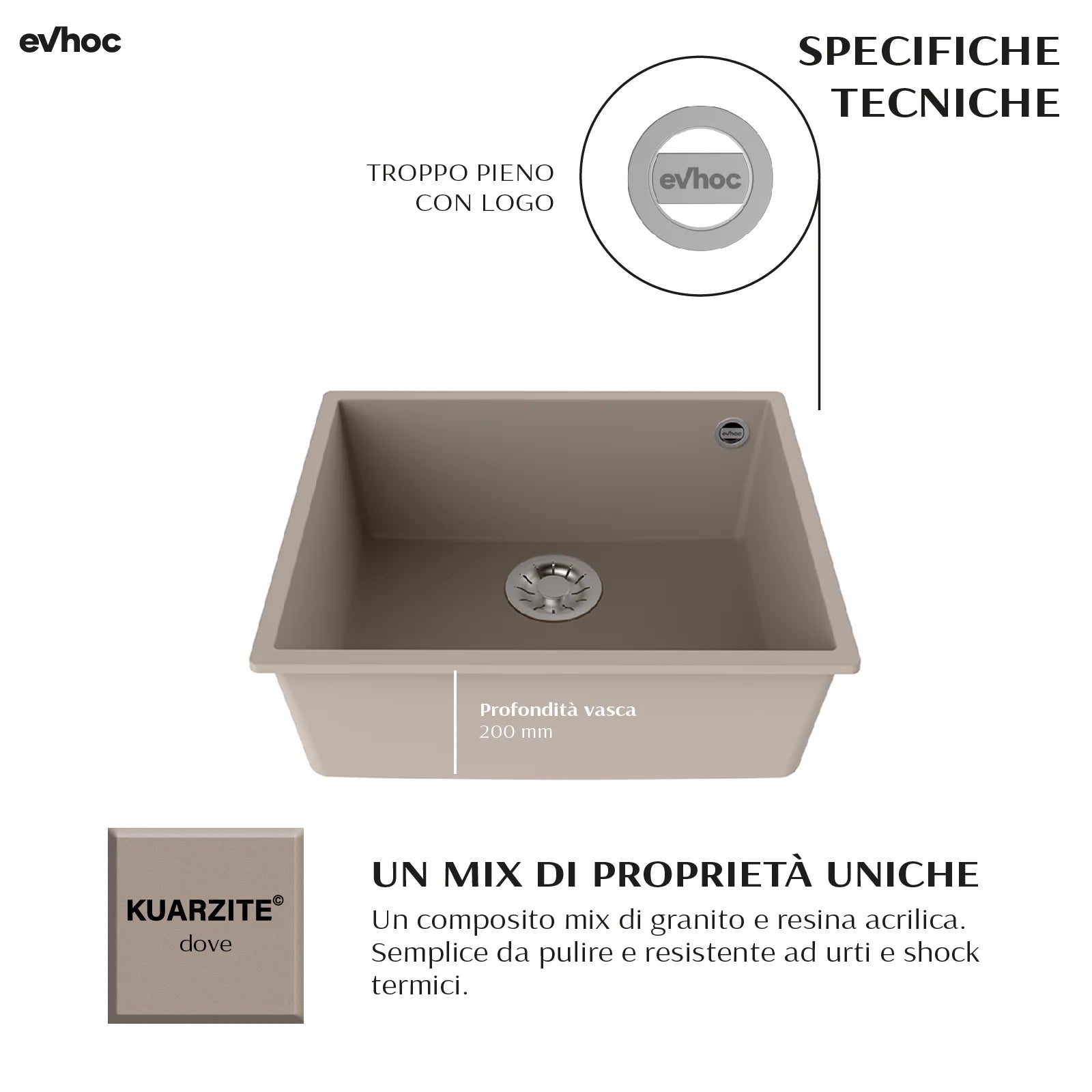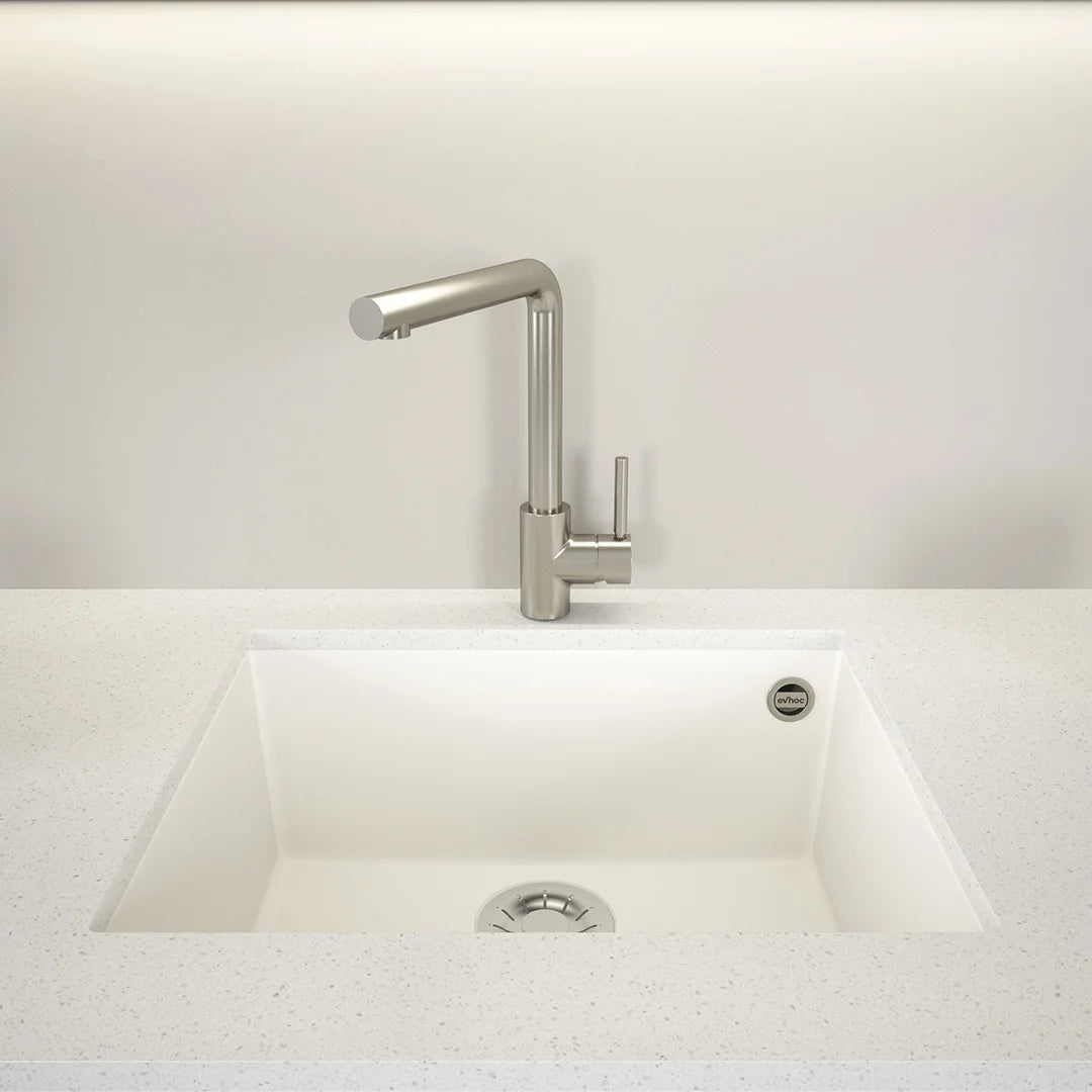 The basin features a wide and deep bottom,with a height of 20 cmand a unique slope ensuring efficient drainage. The internal corners are expertly chamfered with a 5mm radius, eliminating sharp edges and facilitating daily cleaning. Personalize your Unicum S undermount with the variety of captivating colors available: black, cement gray, white, and taupe. This sink not onlyadds timeless style to your kitchenbut also seamlessly integrates with smaller spaces.