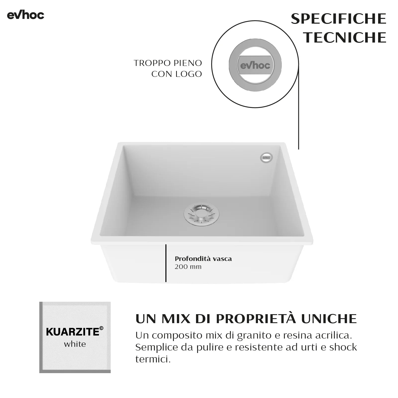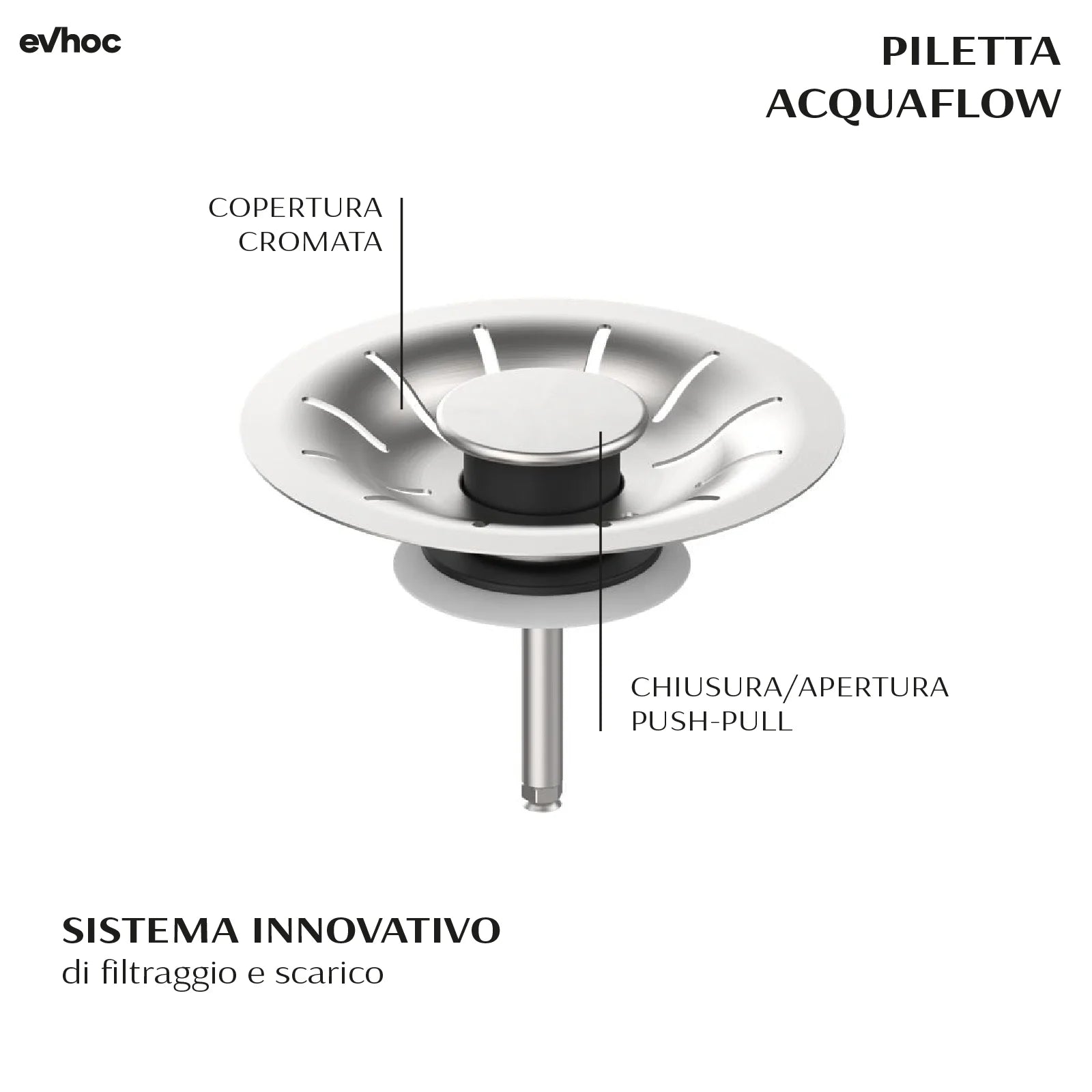 The sink features the AcquaFlow drainage plug, guaranteeing an innovative water drainage and filtration system. Consult the product data sheet for further details and discover the technical features that make Unicum S a smart choice. The 3½” drainage hole, recessed hole of 50x40 cm R5,pre-mounted hooks, and included mounting accessoriessimplify the installation process, offering convenience and functionality for a kitchen that reflects your style.