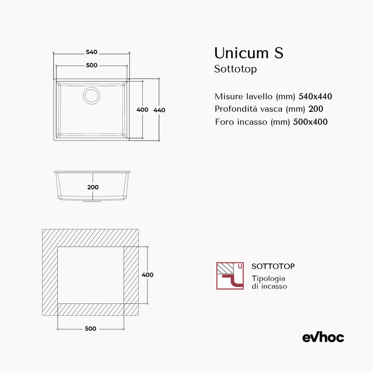 UNICUM S - Lavello in Kuarzite effetto granito Sottotop 54×44 cm